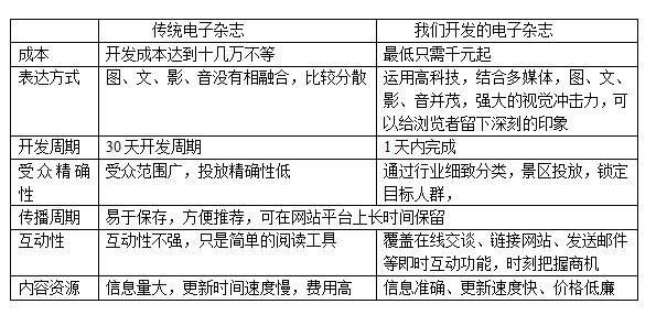 电子杂志是介于传统纸制广告与影视广告之间的新媒体,具有声、影、动画、视频等功能的新媒体。电子杂志相比于传统的纸质画册有以下优点: