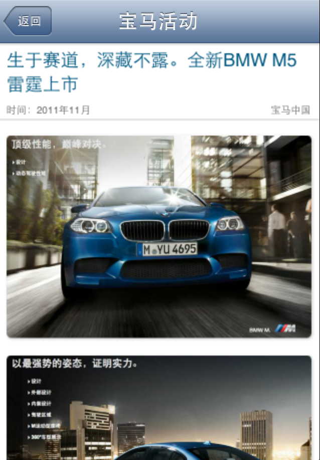 4. 官方微博,宝马中国新浪官方微博特别定制版,可在程序中直接浏览宝马中国发布的最新微博,并可进行评论转发