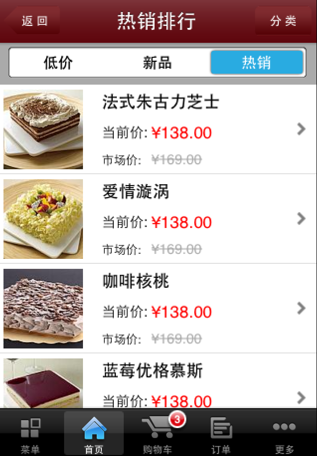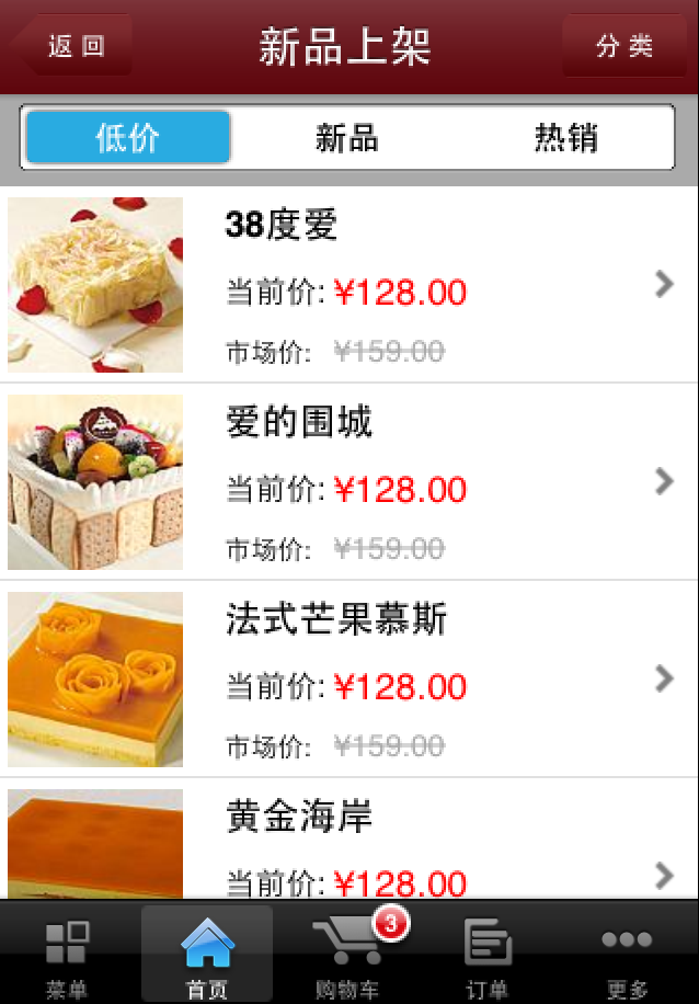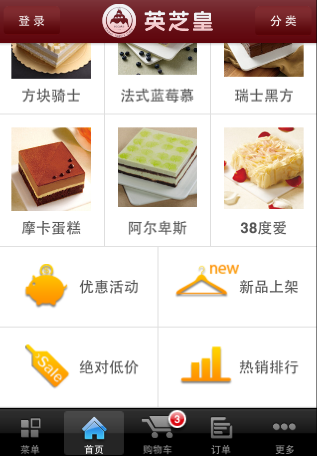 英芝皇蛋糕 手机客户端 截图(7张)品、热卖产品的价格,并可以将商品快速分享到微博及微信。