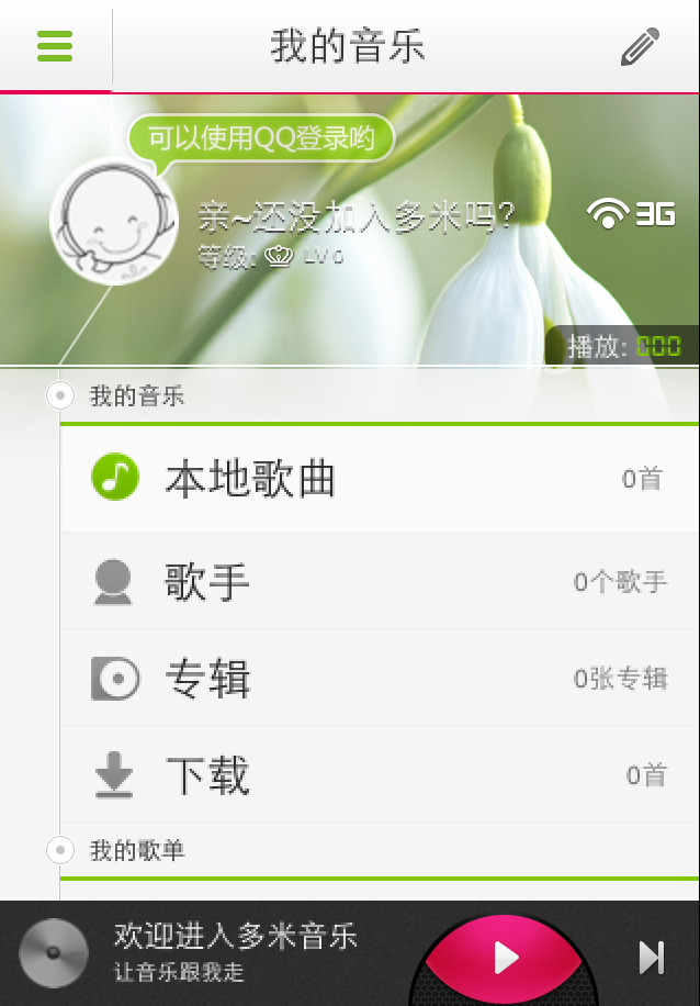 多米音乐5.0具有颠覆性的时尚界面,最智能的音乐搜索引擎,海量320Kb高品质音乐内容和前所末有的歌单分享体系,会让你很难相信这仅仅是一款音乐软件。 这是一款你不可错过的音乐软件,来吧亲们,和多米一起体验新时代的音乐潮流!