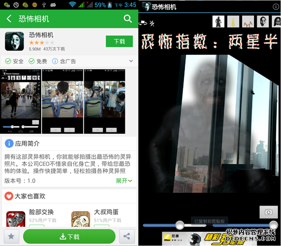 整蛊APP大肆袭来,成为新热门。据国内最大的移动分发平台——360手机助手提供数据显示,虽距离万圣节还有两周时间,但万圣节相关整蛊APP的搜索量和下载量均有明显提升。现在,小编就给大家介绍4款整蛊性能优质、可玩性较高的“闹鬼”APP。在介绍之前,小编提醒各位,下载APP请到安全360手机助手等安全平台下载,避免成为“盗版APP”的整蛊对象。BTW,部分APP效果逼真,请谨慎使用。